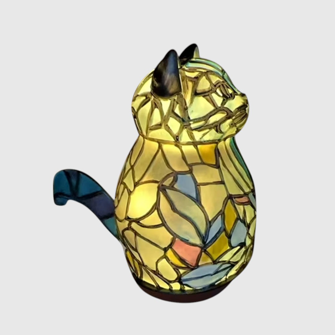 Barevná skleněná lampa s kočičím motivem a zlatým povrchem