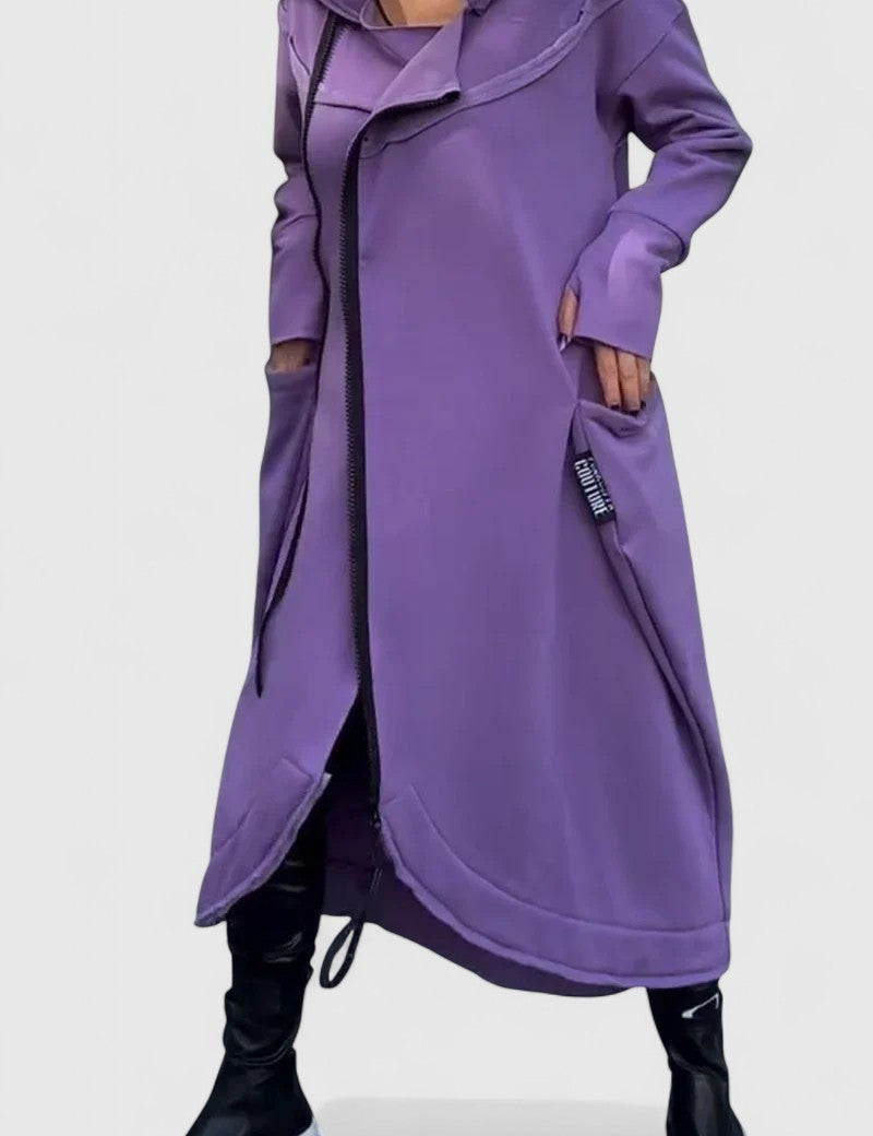 MARIE-Dlouhý kabát s kapucí a zipem