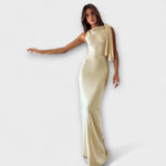 Bez námahy půvab s jednoduchou elegancí: Tyto off-white maxi šaty s uzlem nabízejí splývavou siluetu z kvalitních materiálů a zajišťují pohodlné nošení po celý den. Ideální pro svatby, výlety na pláž nebo formální příležitosti, spojují minimalistickou eleganci s praktickým designem.