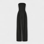 Overal Eva je definicí moderní elegance. S jeho designem bez ramínek a dokonalým střihem byl tento kousek navržen tak, aby zvýraznil vaši postavu a poskytl pohodlný vzhled. Přiléhavá horní část dokonale kontrastuje s kalhotami širokého střihu, které dodávají plynulý pohyb. Je to ideální volba pro zvláštní událost nebo večerní výlet.