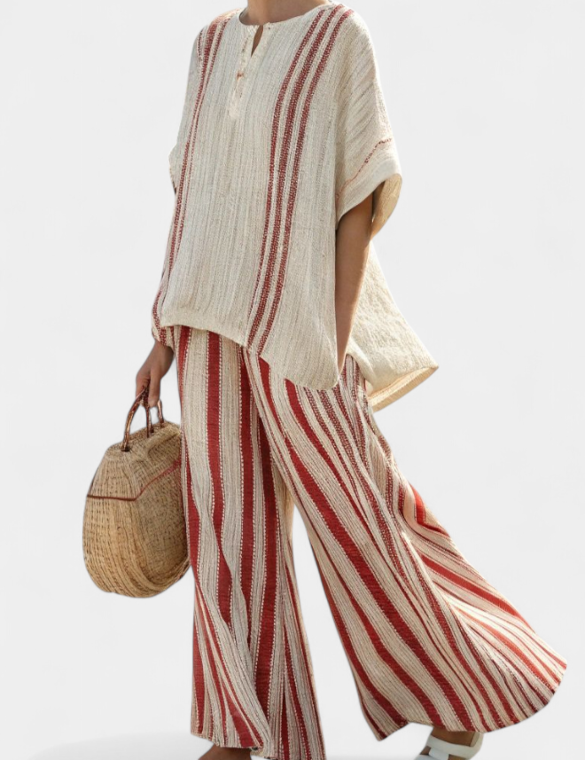 Úchvatný dvoudílný kostým Daisy s červenými pruhy v přírodní textuře