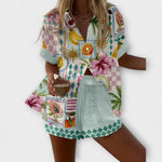 Osvětli své léto s krátkým setem Maevin s ovocným vzorem – hravý a svěží dotek pro tvé každodenní pohodlí. S lahodnými zobrazeními ovoce a vzdušnou siluetou, tento set přináší radost při každém kroku. Ideální na procházky po pláži, brunch s kamarádkami nebo stylové chvíle relaxace.