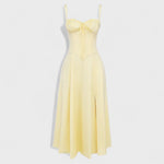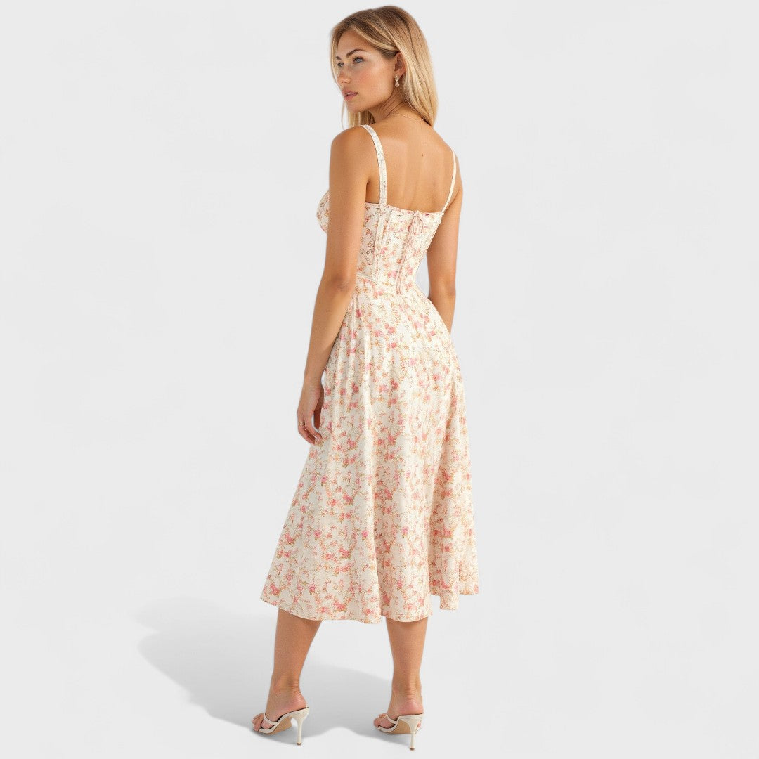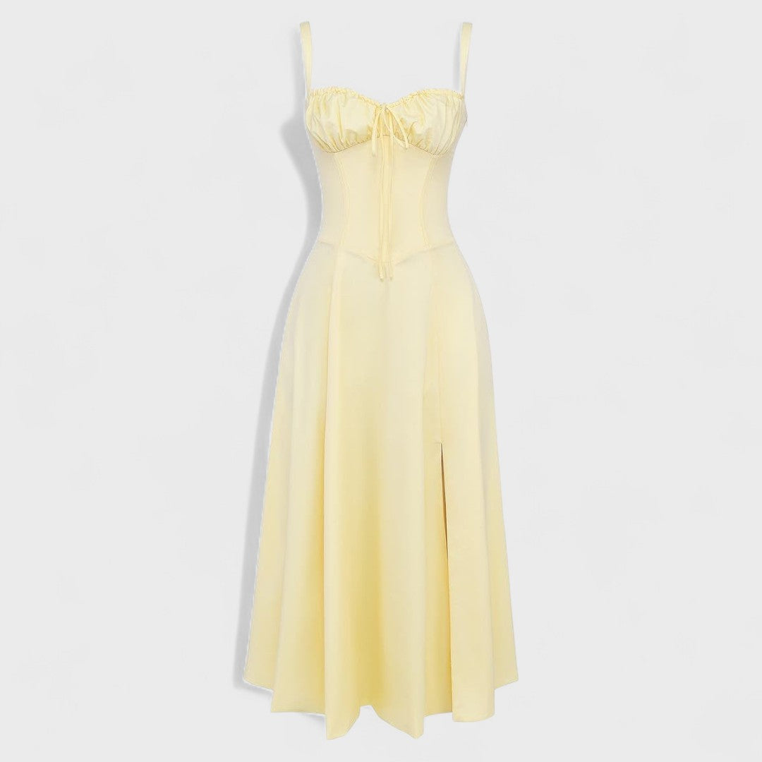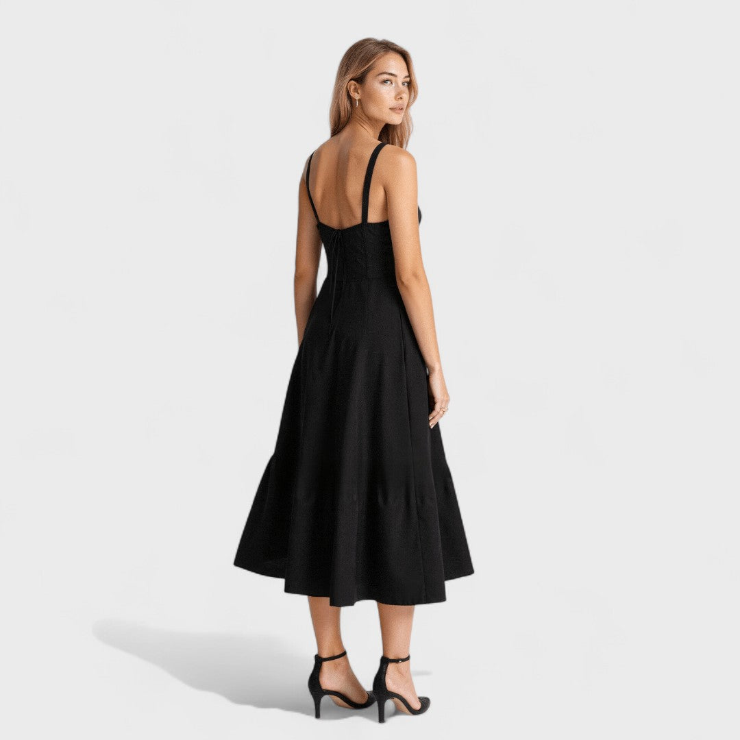 Šaty Kiana představují dokonalý pohodlně-nóbl kousek – korzetový živůtek lichotí pasu, zatímco splývavá sukně ladně zdůrazňuje ženské křivky. Vzdušný materiál s jemnou strečovou příměsí se postará o to, abyste se cítila skvěle nejen při formálních příležitostech, ale i během odpolední kávy nebo večeře s přáteli.